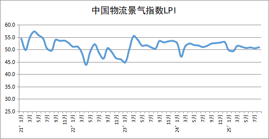 中国物流与采购联合会发布的2025年8月份中国物流业景气指数为50.9%,较上月回升0.4个百分点。