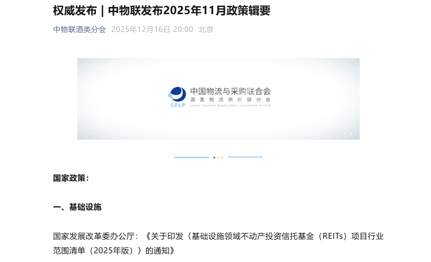 国家发展改革委办公厅:《关于印发〈基础设施领域不动产投资信托基金(REITs)项目行业范围清单(2025年版)〉的通知》